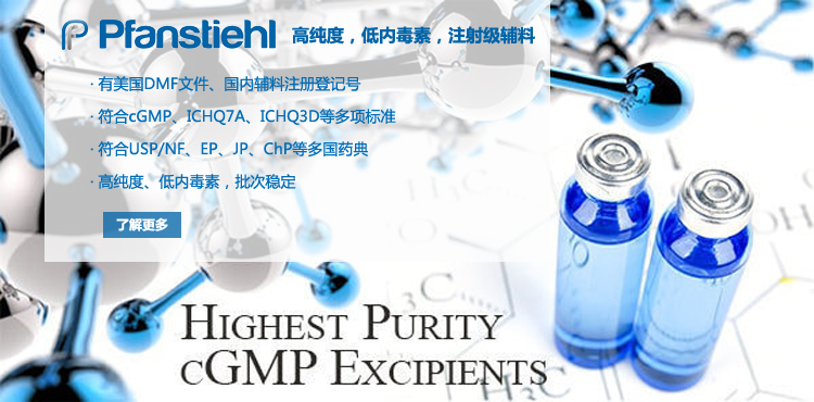 “熱烈祝賀Pfanstiehl的注射級甘氨酸Glycine(G-140)喜獲CDE登記號F20250000403, 這是Pfanstiehl產品獲得的第18個CDE登記號!”甘氨酸在醫藥輔料制劑中應用廣泛,, 可作為緩沖劑,增溶劑,穩定劑等,具有諸多優勢。Pfanstiehl秉承一貫高品質理念,為滿足全球生物制藥行業對于高品質甘氨酸的需求,隆重推出的注射級甘氨酸Glycine (G-140), 具有超高純度,超低內毒素,超低金屬殘留的特點,單獨檢測29種金屬離子,并且新增DNA,RNA,DNA酶,RNA酶和脂肪酶,亞硝酸鹽等多項質量指標的檢測,符合多國藥典規定(USP, EP, BP, JPE, ChP),可用于生物治療性藥物和疫苗的生產。產品信息:· 產品名稱:Glycine, High Purity, Low Endotoxin, Low Metals, USP, EP, BP, JPE, ChP (G-140)· 中文名稱:甘氨酸· 分子式:C2H5NO2· 分子量:75.07 g / mol· CAS號:56-40-6· 產品貨號:G-140產品特點: · 超高純度,超低內毒素,超低微生物含量,超低金屬雜質殘留· 質量指標新增DNA,RNA,DNA酶,RNA酶,脂肪酶和亞硝酸鹽檢測· 符合多國藥典:USP, EP, BP, JPE, ChP· 符合ICH Q3D標準· 符合GMP標準· 已獲DMF和CDE登記號 產品應用:· 緩沖劑· 穩定劑· 增溶劑如果您對Pfanstiehl注射級別Glycine G-140感興趣,歡迎聯系Pfanstiehl 中國區代理商北京西美杰科技有限公司獲得如下詳細的產品概況說明文件和測試樣品。Pfanstiehl Inc.最新產品系列如下,歡迎聯系北京西美杰科技有限公司獲取100g裝免費樣品。北京西美杰科技有限公司為Pfanstiehl中國代理,為客戶提供完善的技術支持與售后服務。歡迎撥打西美杰客服電話400-050-4006或者登陸網站www_xmjsci_com.dlhgjcpj.com了解更多信息。 更多>